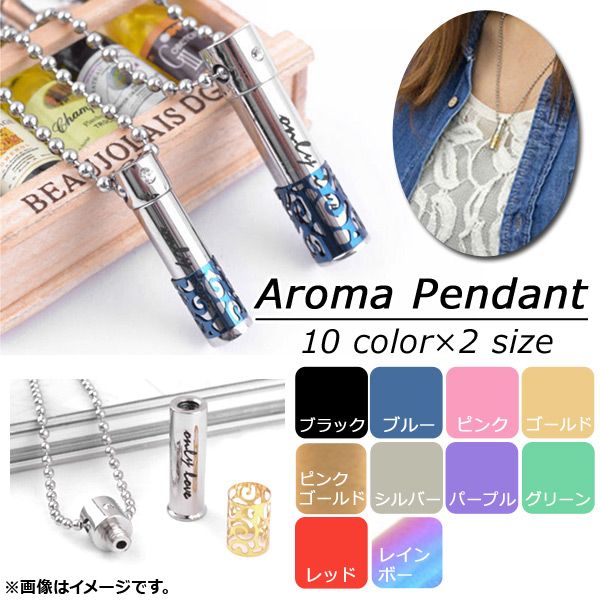 アロマペンダント ステンレス製 アロマが香るペンダント♪ 選べる10カラー 選べる2サイズ AP-TH148 カラー: ブラック レッド ブルー グリーン パープル ピンク ゴールド シルバー レインボー ピンクゴールド