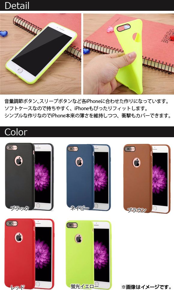 AP iPhoneケース ソフト TPU カメラ枠がオシャレ! 選べる5カラー iPhone7,8など AP-MM0020 カラー: ブラック レッド ネイビー ブラウン 蛍光イエロー