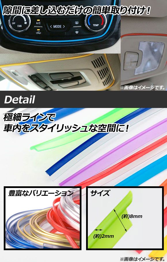 インテリアスリムモール 汎用 車内空間をスタイリッシュに! 選べる14カラー AP-IT226-3M カラー: ブラック レッド ブルー イエロー グリーン オレンジ ネイビー ゴールド シルバー メタリックブルー メタリックレッド ライトグリーン 蛍光グリーン メタリックパープル