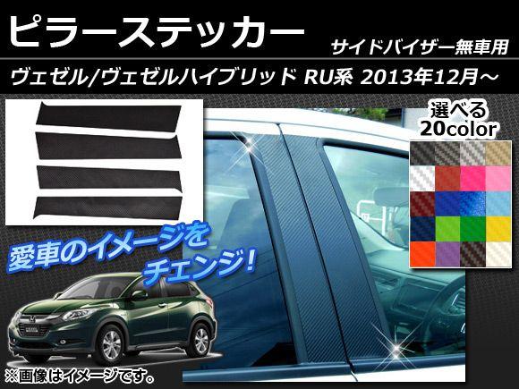 ピラーステッカー ホンダ ヴェゼル/ヴェゼルハイブリッド RU系(RU1,RU2,RU3,RU4) サイドバイザー無し用 カーボン調 選べる20カラー AP-CF002 入数:1セット(4枚)