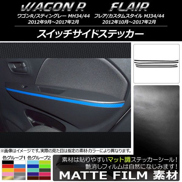 スイッチサイドステッカー スズキ/マツダ ワゴンR/スティングレー,フレア/カスタムスタイル マット調 色グループ1 入数:1セット(4枚) AP-CFMT1012 色グループ1: ブラック ホワイト レッド ブルー イエロー オレンジ ピンク グレー ゴールド シルバー