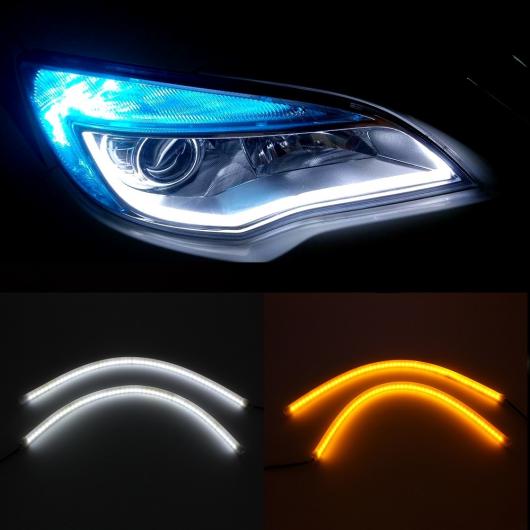 2ピース DRL フレキシブル LED チューブストリップ デイタイム ランニングライトウインカーエンジェルア 30CM White turn Yellow AL-BB-1088 AL