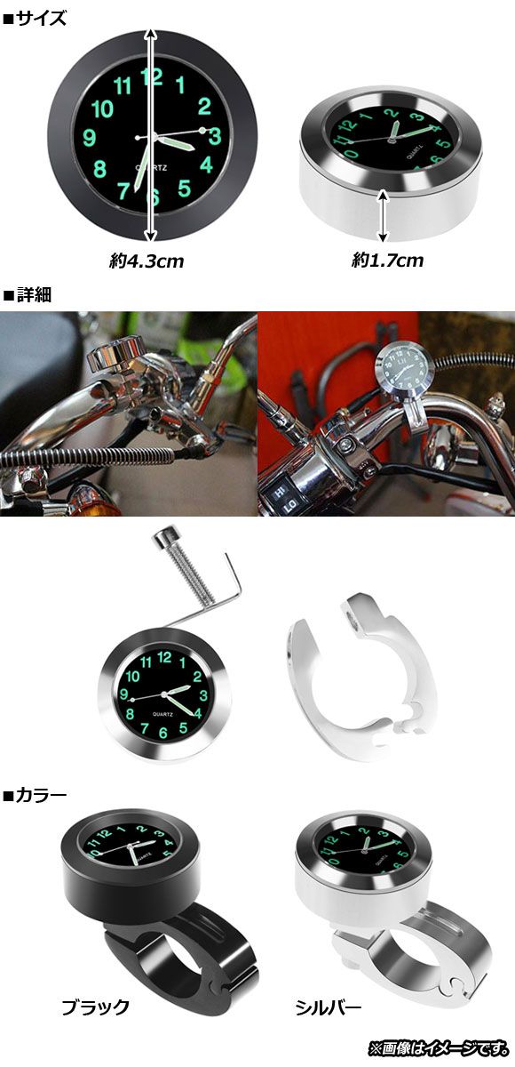 ハンドルバーマウント ハンドルバー バーマウント ハンドルマウント アナログ時計 バイク用時計 ハンドルバーウォッチ ウォッチ クロック 7/8インチ 7/8inch 1インチ 1inch 銀 クローム silver chrome black 黒 通勤 ツーリング 外装 外装パーツ パーツ エクステリア ドレスアップ カスタム カスタマイズ 装飾 4580659507229 4580659507236 黒 BLACK 銀 SILVER motorcycle motorbike autobicycle バイク モーターバイク モーターサイクル モーター サイクル オートバイ 2輪車 二輪 二輪車 501795880