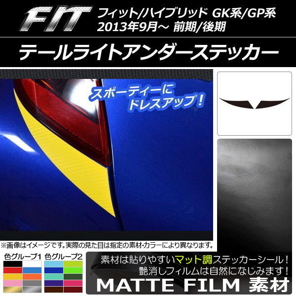 テールライトアンダーステッカー マット調 ホンダ フィット/ハイブリッド GK系/GP系 前期/後期 2013年09月〜 色グループ1 入数:1セット(2枚) AP-CFMT2290 色グループ1: ブラック ホワイト レッド ブルー イエロー オレンジ ピンク グレー ゴールド シルバー