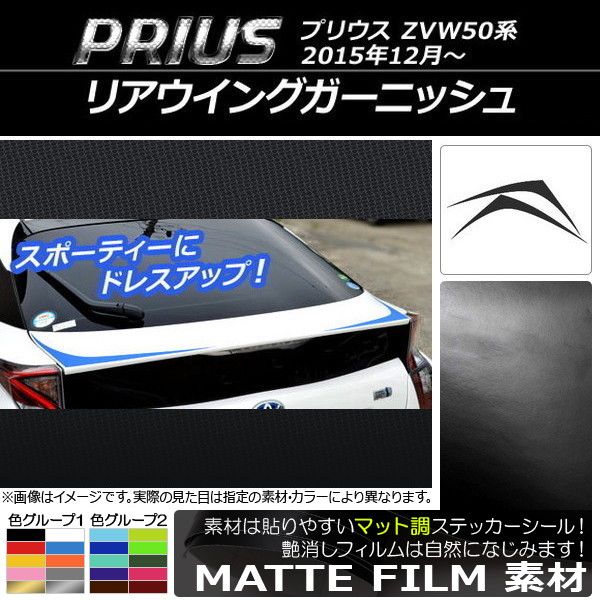 AP リアウイングガーニッシュステッカー マット調 トヨタ プリウス ZVW50,ZVW51,ZVW55 2015年12月〜 色グループ1 AP-CFMT299 入数:1セット(2枚)