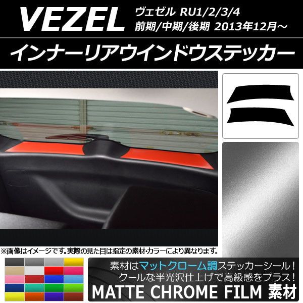 インナーリアウインドウステッカー ホンダ/本田/HONDA ヴェゼル RU1/2/3/4 2013年12月〜 マットクローム調 選べる20カラー AP-MTCR3484 入数:1セット(2枚)
