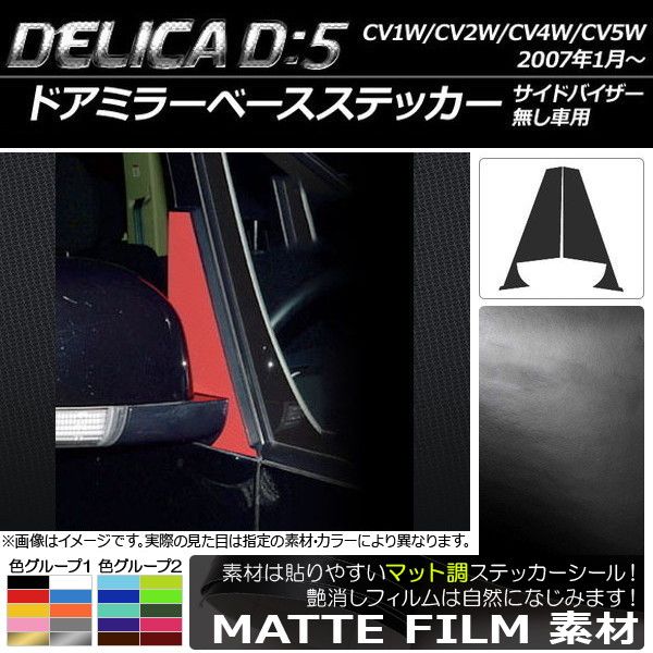 ドアミラーベースステッカー マット調 ミツビシ デリカD:5 CV1W/CV2W/CV4W/CV5W サイドバイザー無し車用 色グループ1 入数:1セット(2枚) AP-CFMT645 色グループ1: ブラック ホワイト レッド ブルー イエロー オレンジ ピンク グレー ゴールド シルバー