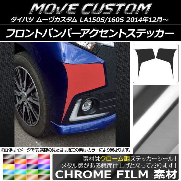 フロントバンパーアクセントステッカー ダイハツ ムーヴカスタム LA150S/LA160S クローム調 選べる20カラー AP-CRM1229 入数:1セット(2枚)