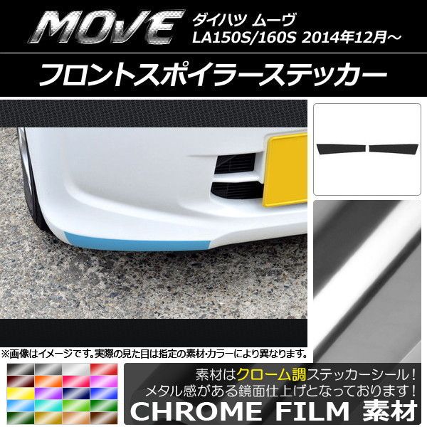 フロントスポイラーステッカー クローム調 ダイハツ ムーヴ LA150S/LA160S 選べる20カラー 入数:1セット(2枚) AP-CRM1189 カラー: ブラック ホワイト レッド ブルー イエロー グリーン オレンジ パープル ピンク ネイビー ブラウン ボルドー ゴールド シルバー マゼンタ ダークグリーン ライトグリーン ライトブルー ローズゴールド シアン