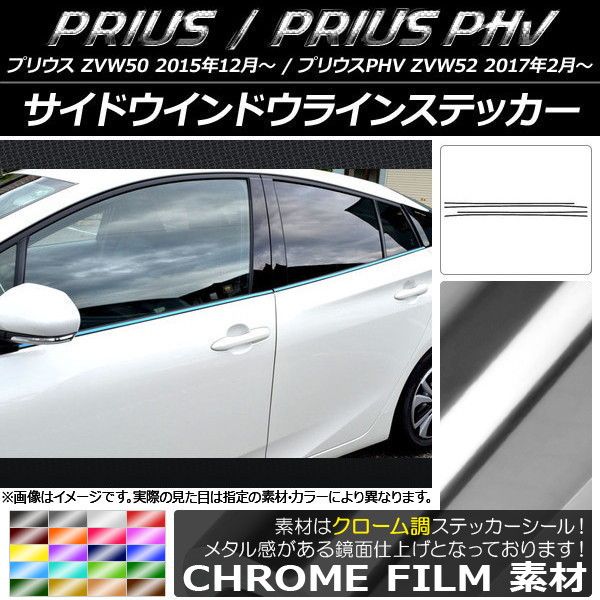 サイドウインドウラインステッカー プリウス/PHV ZVW50/ZVW52 クローム調 選べる20カラー AP-CRM1366 入数:1セット(4枚)