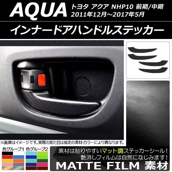 AP インナードアハンドルステッカー マット調 トヨタ アクア NHP10 前期/中期 2011年12月〜2017年05月 色グループ2 AP-CFMT122 入数:1セット(4枚)