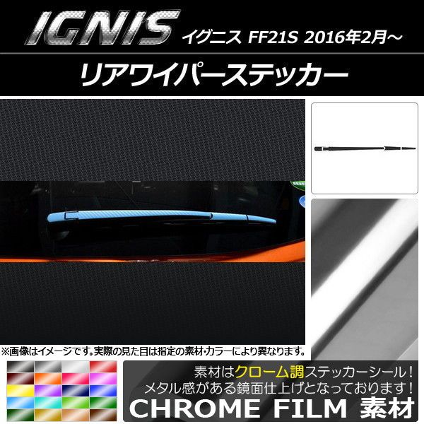 リアワイパーステッカー クローム調 スズキ イグニス FF21S 2016年2月〜 選べる20カラー AP-CRM1652 カラー: ブラック ホワイト レッド ブルー イエロー グリーン オレンジ パープル ピンク ネイビー ブラウン ボルドー ゴールド シルバー マゼンタ ダークグリーン ライトグリーン ライトブルー ローズゴールド シアン