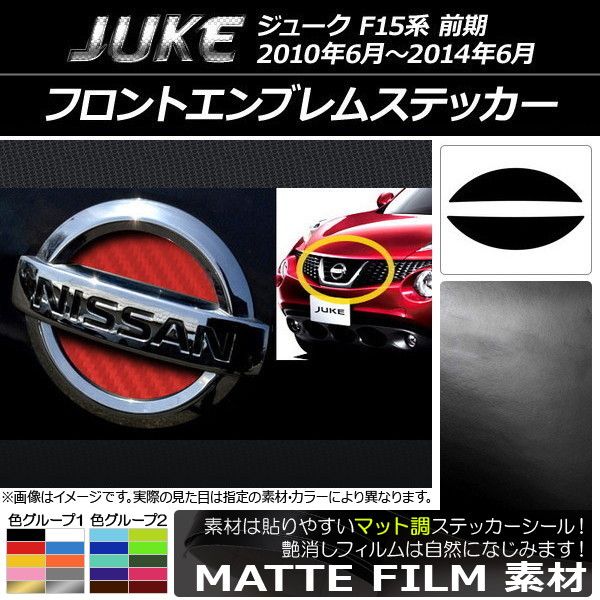 フロントエンブレムステッカー マット調 ニッサン ジューク F15系 前期 2010年06月〜2014年06月 色グループ2 AP-CFMT1912