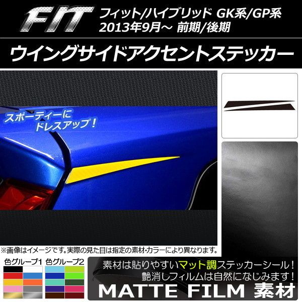 ウイングサイドアクセントステッカー マット調 ホンダ フィット/ハイブリッド GK系/GP系 前期/後期 色グループ2 入数:1セット(2枚) AP-CFMT2332