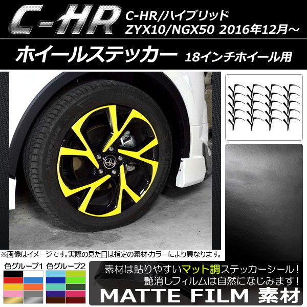 ホイールステッカー トヨタ C-HR/ハイブリッド ZYX10/NGX50 18インチホイール用 2016年12月〜 マット調 色グループ2 AP-CFMT2395 入数:1セット(20枚)