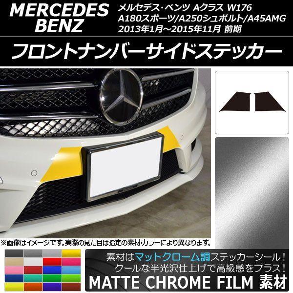 フロントナンバーサイドステッカー マットクローム調 Aクラス W176 A180スポーツ/A250シュポルト/A45AMG 選べる20カラー 入数:1セット(2枚) AP-MTCR2741