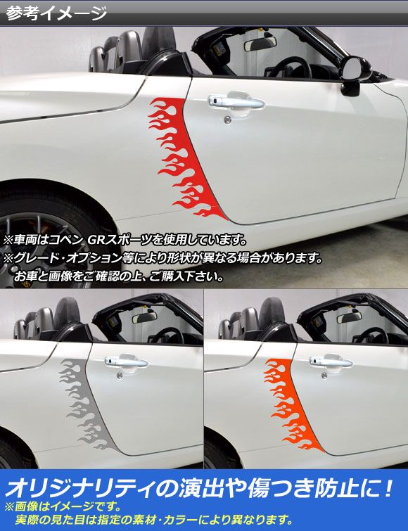 サイドドアステッカー ファイアデザイン コペン ローブ/セロ/GRスポーツ LA400A LA400K マットクローム調 選べる20カラー AP-MTCR2718 入数:1セット(4枚)