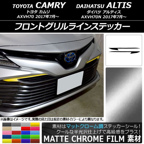フロントグリルラインステッカー トヨタ/ダイハツ カムリ/アルティス XV70系 2017年07月〜 マットクローム調 選べる20カラー AP-MTCR3068 入数:1セット(2枚)