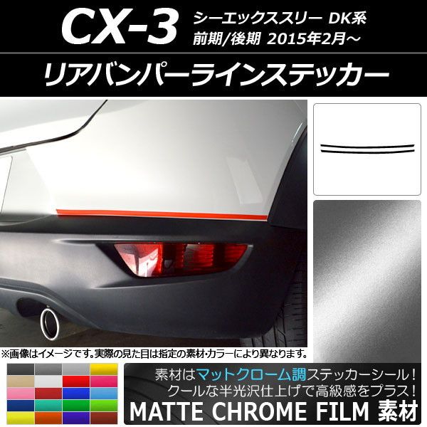 リアバンパーラインステッカー マツダ CX-3 DK系 前期/後期 2015年02月〜 マットクローム調 選べる20カラー AP-MTCR3230 入数:1セット(2枚)