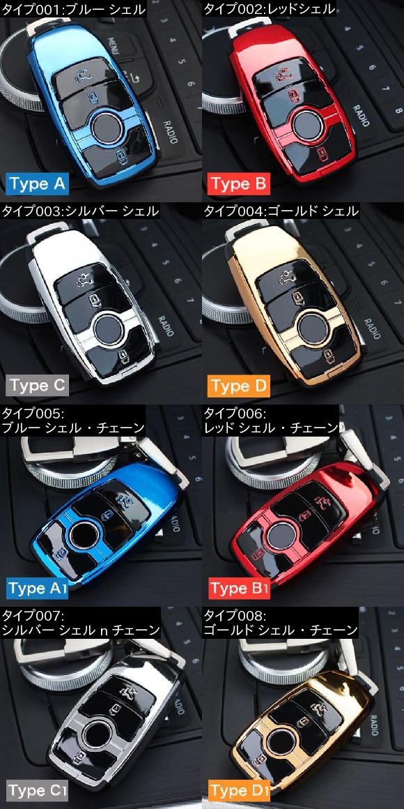 車用内装パーツ ABS キー シェル キー ケース カバー スタイリング 適用: メルセデスベンツ Eクラス E300 E200 E220 E260 E320 2017-2018 ブルー シェル〜ゴールド シェル AL-DD-7682 AL
