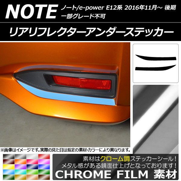 リアリフレクターアンダーステッカー クローム調 ニッサン ノート/ノートe-power E12系 後期 2016年11月〜 選べる20カラー 入数:1セット(2枚) AP-CRM3320