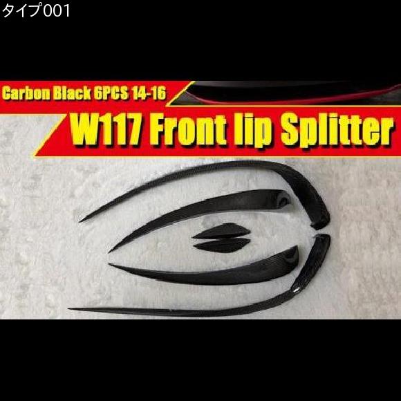 車用外装パーツ 適用: メルセデスベンツ W117 CLA45 6個 フロント バンパー カナード リップ キット カーボンファイバー ブラック CLAクラス CLA180 CLA200 CLA250 2014-2016 タイプ001 AL-EE-0133 AL