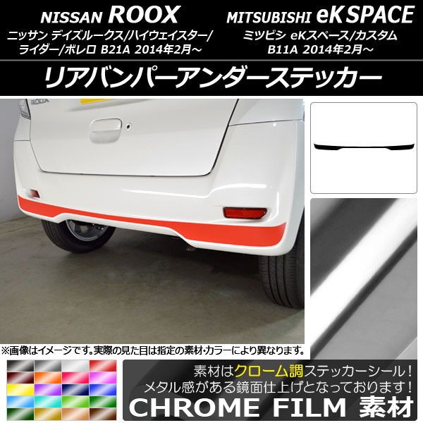 リアバンパーアンダーステッカー ニッサン/ミツビシ デイズルークス/eKスペース B21A/B11A 前期/後期 2014年02月〜 クローム調 選べる20カラー AP-CRM3560