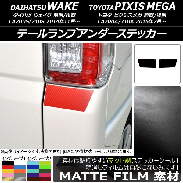 テールランプアンダーステッカー マット調 ダイハツ/トヨタ ウェイク/ピクシスメガ LA700系 2014年11月〜 色グループ1 入数:1セット(2枚) AP-CFMT3016 色グループ1: ブラック ホワイト レッド ブルー イエロー オレンジ ピンク グレー ゴールド シルバー