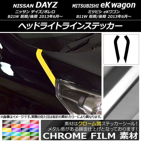 ヘッドライトラインステッカー クローム調 ニッサン/ミツビシ デイズ/ボレロ/eKワゴン B21W/B11W 選べる20カラー 入数:1セット(2枚) AP-CRM3641