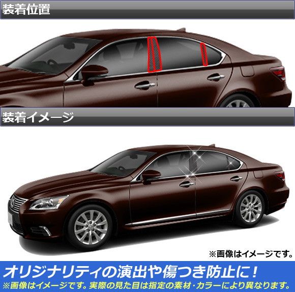 ピラーステッカー レクサス LS460 LS460L LS600h LS600hL UVF/USF40系 サイドバイザー無し用 カーボン調 選べる20カラー AP-CF211 入数:1セット(6枚)