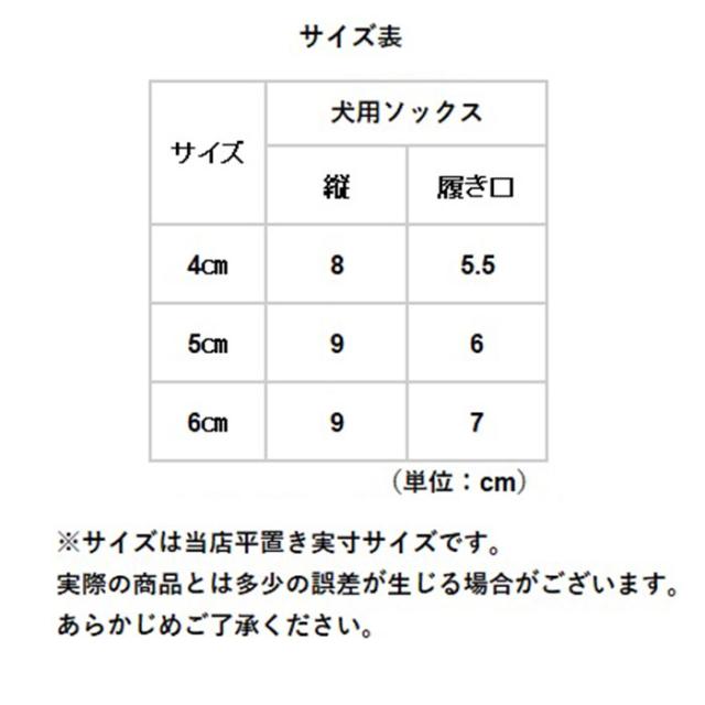 | サイズ | [ドッグシューズ」 4cm、5cm、6cm ※サイズについての詳細はサイズ表をご覧くださいませ。 ※実際の商品とは多少の誤差が生じる場合がございます。あらかじめご了承ください。 |