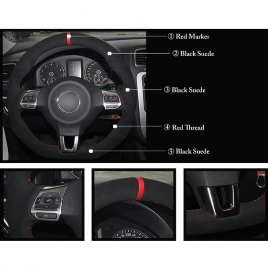 ステアリングホイールカバー 編み上げタイプ ブラックスウェード 適用: フォルクスワーゲン ゴルフ 6 GTI MK6 VW ポロ GTI シロッコ R パサート CC R-LINE レッド マーカー 糸・ブルー マーカー 糸 AL-FF-0700 AL