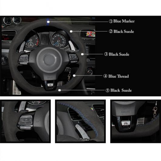 AL ステアリングホイールカバー 編み上げタイプ ブラックスウェード 適用: フォルクスワーゲン ゴルフ 6 GTI MK6 VW ポロ GTI シロッコ R パサート CC R-LINE レッド マーカー 糸・ブルー マーカー 糸 AL-FF-0700