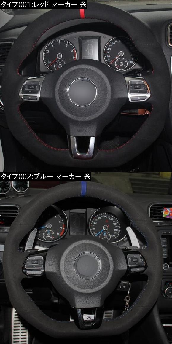 automobile motorcar オートモービル モーターカー カー 車 自動車 車両 ハンドルカバー GOLF フォルクスワーゲン Volkswagen Rライン バリエーション タイプ001:レッド マーカー 糸 タイプ002:ブルー