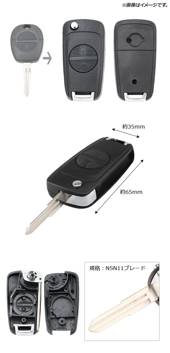 ブランクキー/ジャックナイフキー 規格:NSN11 2ボタン ニッサン汎用 AP-AS362