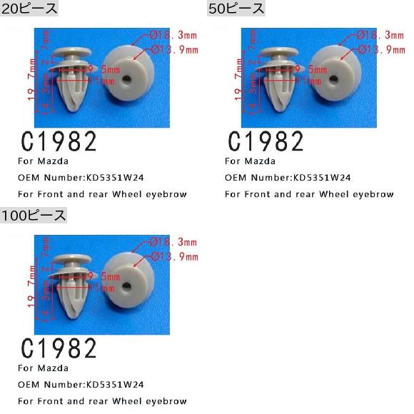 インテリア アクセサリー オート ファスナー クリップ 適用: マツダ CX-3 CX-5 CX-9 フロント リア ホイール アイブロー KD5351W24 100ピース AL-MM-0646 AL