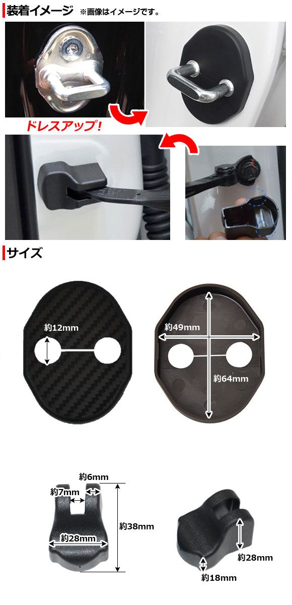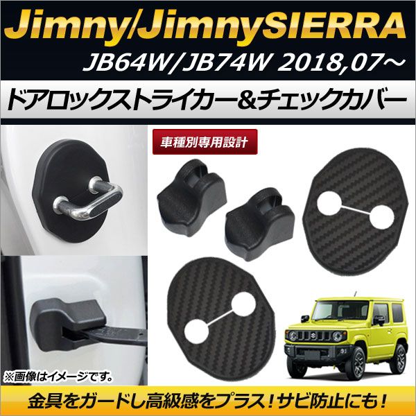 ドアロックストライカー&ドアチェックカバー スズキ ジムニー/ジムニーシエラ JB64W/JB74W 2018年07月〜 カーボン調 ABS樹脂 AP-AS167 入数:1セット(4個)