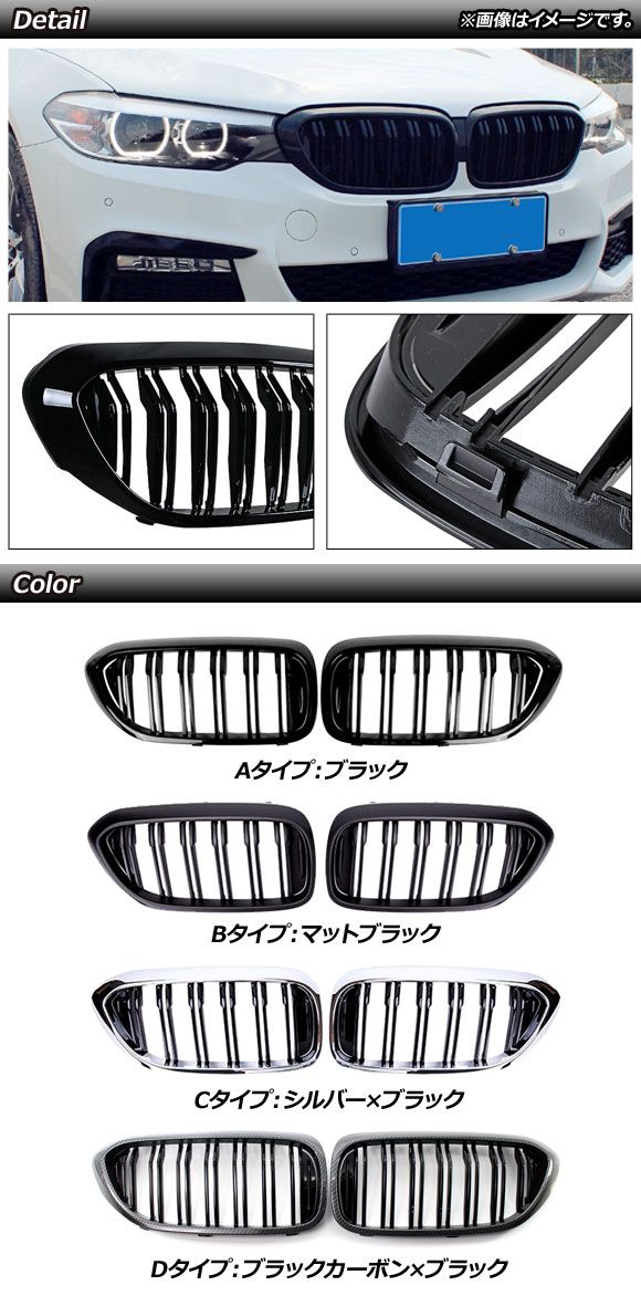 フロントグリルカバー BMW 5シリーズ G30/G31 2017年〜2020年 マットブラック Bタイプ ABS製 ダブルバー 入数:1セット(2個) AP-FG335-B