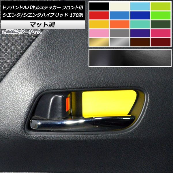 ドアハンドルパネルステッカー フロント用 マット調 トヨタ シエンタ/シエンタハイブリッド 170系 色グループ2 入数:1セット(2枚) AP-CFMT3949 色グループ2: パープル ブラウン ボルドー マゼンタ ダークグリーン ダークブルー ライトイエロー ライトグリーン ライトブルー シアン