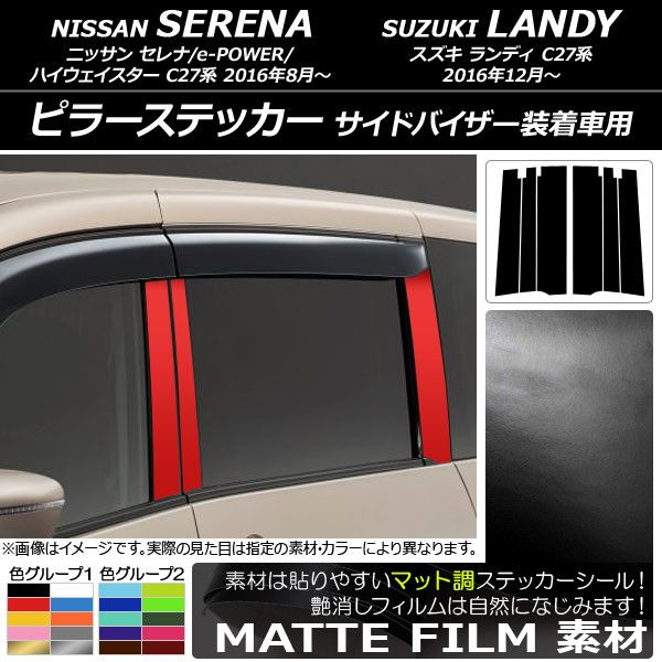ピラーステッカー ニッサン/スズキ セレナ/e-POWER/ハイウェイスター/ランディ C27系 マット調 色グループ1 AP-CFMT3848 入数:1セット(6枚)