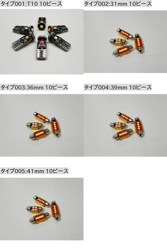 ・タイプ001:T10 10ピース×ホワイト〜アイスブルー
