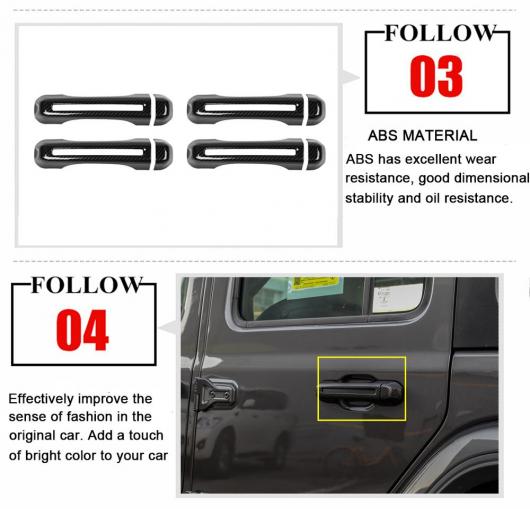 ドア ハンドル 装飾 カバー トリム 適用: ジープ/JEEP ラングラー JL 2018 2019 ジープ/JEEP グラディエーター JT 2020 4ドア カーボンファイバー・カーボンファイバー B AL-KK-7190 AL
