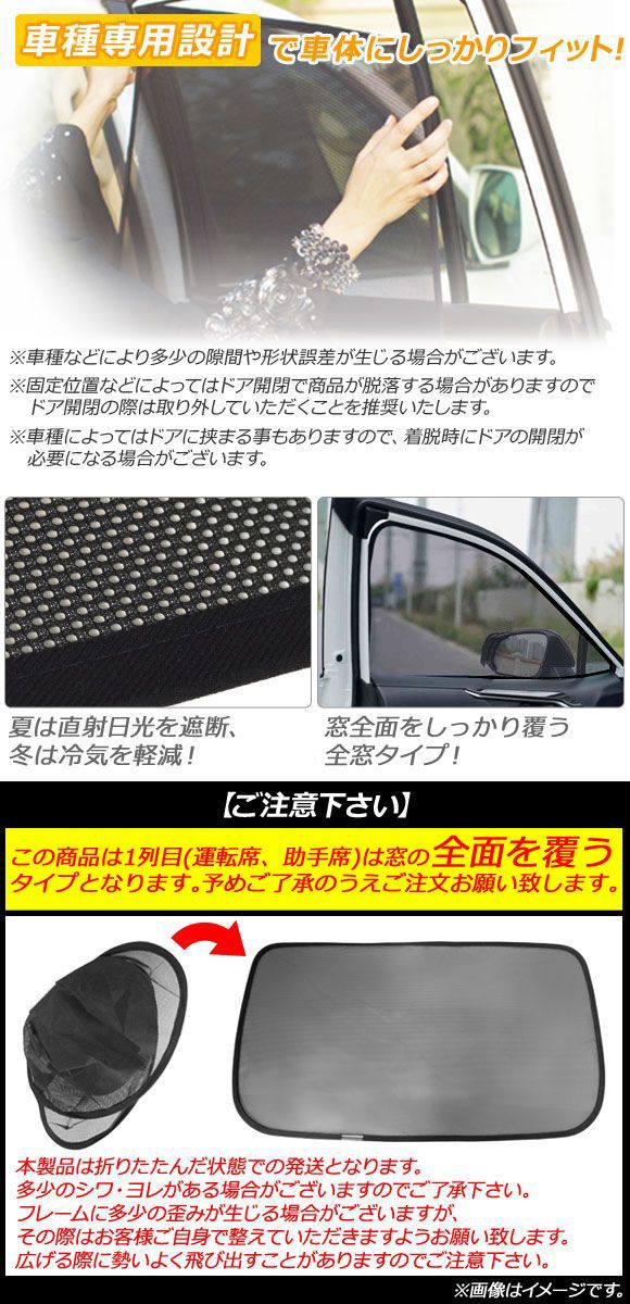 こちらの商品は1列目(運転席、助手席)は窓の全面を覆うタイプとなります。予めご了承のうえ、ご注文をお願いいたします。