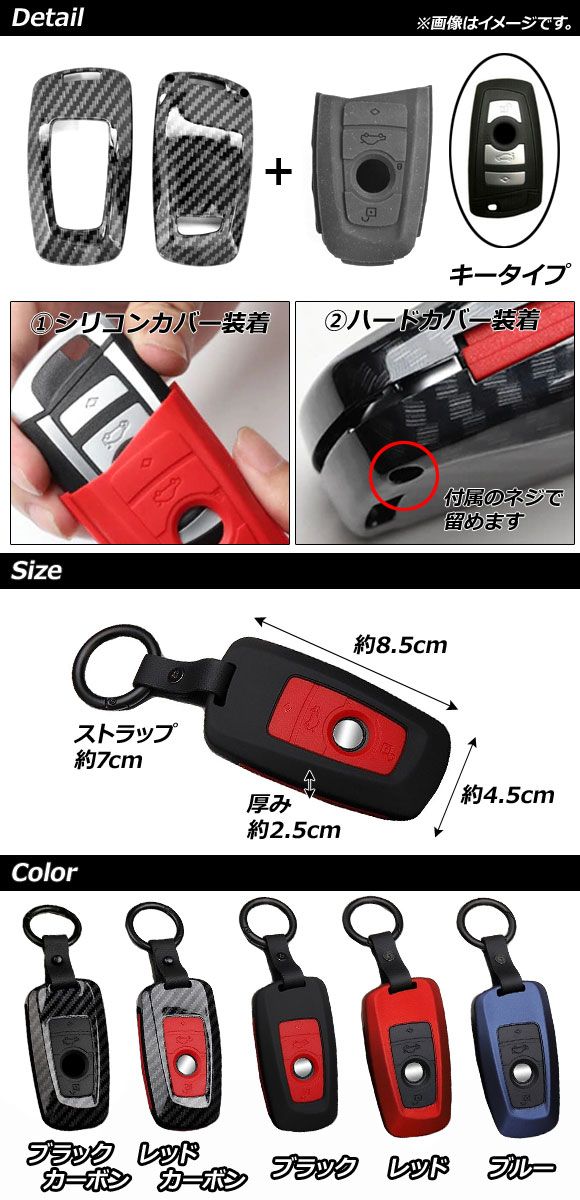 キーカバー BMW 汎用 ABS樹脂製 選べる5カラー AP-AS280 カラー: ブラック レッド ブルー ブラックカーボン レッドカーボン