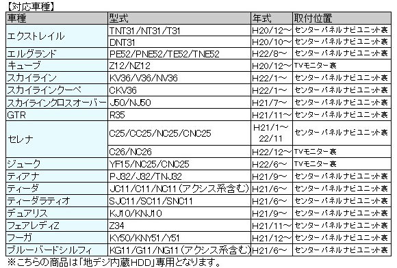 ニッサン 地デジ内蔵HDDディーラーオプションナビ用