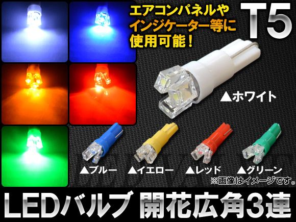 451681260 ホワイト AP-LED-T5-3FLWR-WH ブルー AP-LED-T5-3FLWR-BL イエロー AP-LED-T5-3FLWR-YE レッド AP-LED-T5-3FLWR-RD グリーン AP-LED-T5-3FLWR-GR 4562430340577 4562430340584 4562430340591 4562430340607 4562430340614 LED バルブ エアコンパネル エアコン タコメーター メーター インジケーター シガーライター スイッチ インパネ ダッシュボード オーディオ イルミネーション 灰皿 ルームランプ フットランプ 3発 3灯 3個 12V 12ボルト ウェッジ ウエッジ ウェッジ球 ウエッジ球 白 青 黄色 黄 アンバー 赤 緑 ランプ ライト 照明 電球 電灯 発光 開花 広角 全方向 広範囲 automobile motorcar オートモービル モーターカー カー 車 自動車 車両 カラー WHITE RED BLUE YELLOW GREEN