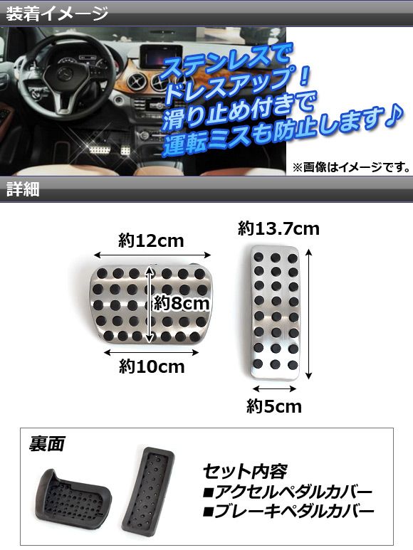 ペダルカバーセット メルセデス・ベンツ CLAクラス C117 2013年〜2014年 ステンレス AT用 入数:1セット(2個) AP-PSS1-AB