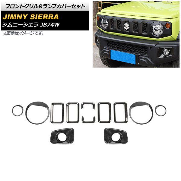 フロントグリル&ランプカバーセット スズキ ジムニーシエラ JB74W 2018年07月〜 ブラックカーボン ABS製 入数:1セット(12個) AP-XT1204-BKC