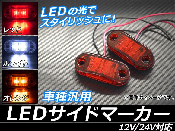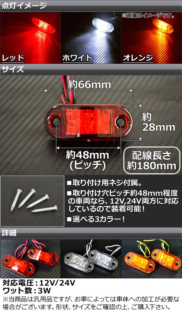 LEDサイドマーカー 12V/24V プラスチック 3W 汎用 選べる3カラー 入数:1セット(左右) AP-LL009 カラー: ホワイト レッド オレンジ