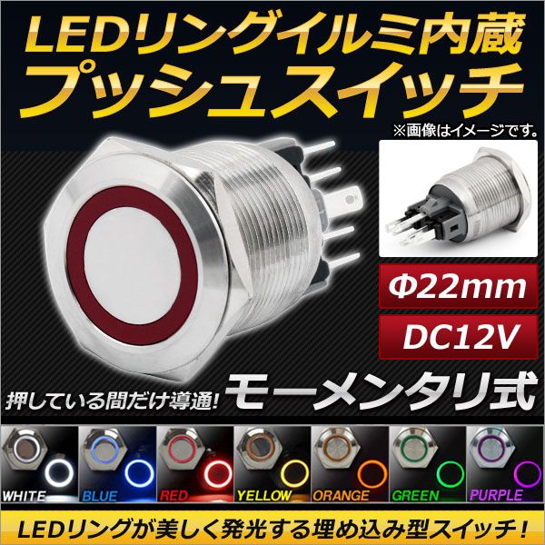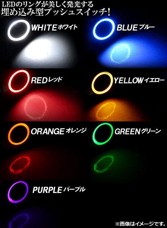 AP LEDリングイルミネーション内蔵 プッシュスイッチ モーメンタリ式 φ22mm 12V 選べる7カラー AP-EC145-22 カラー: ホワイト レッド ブルー イエロー グリーン オレンジ パープル